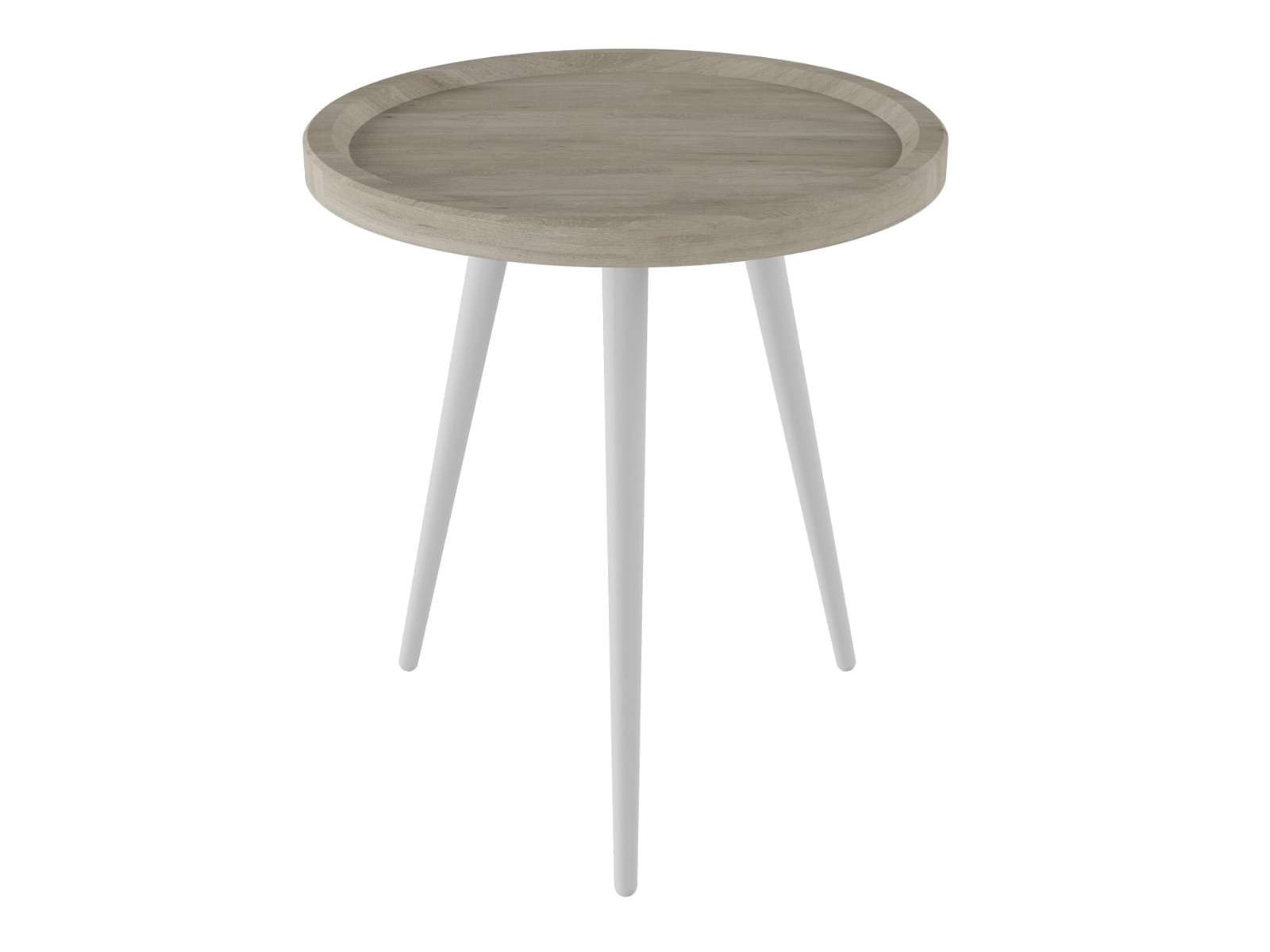 Круглая, слегка вогнутая столешница с оригинальным бортиком изготовлена из МДФ, локаничный контраст которой придают изящные опоры из натурального дерева.