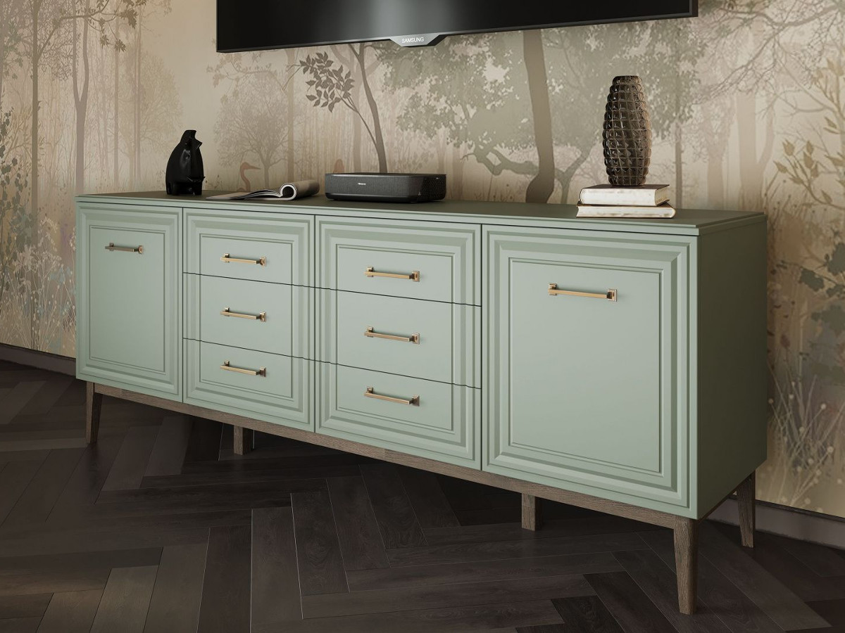 - Комод 6 ящиков 2 двери Гориция Зелёный самшит