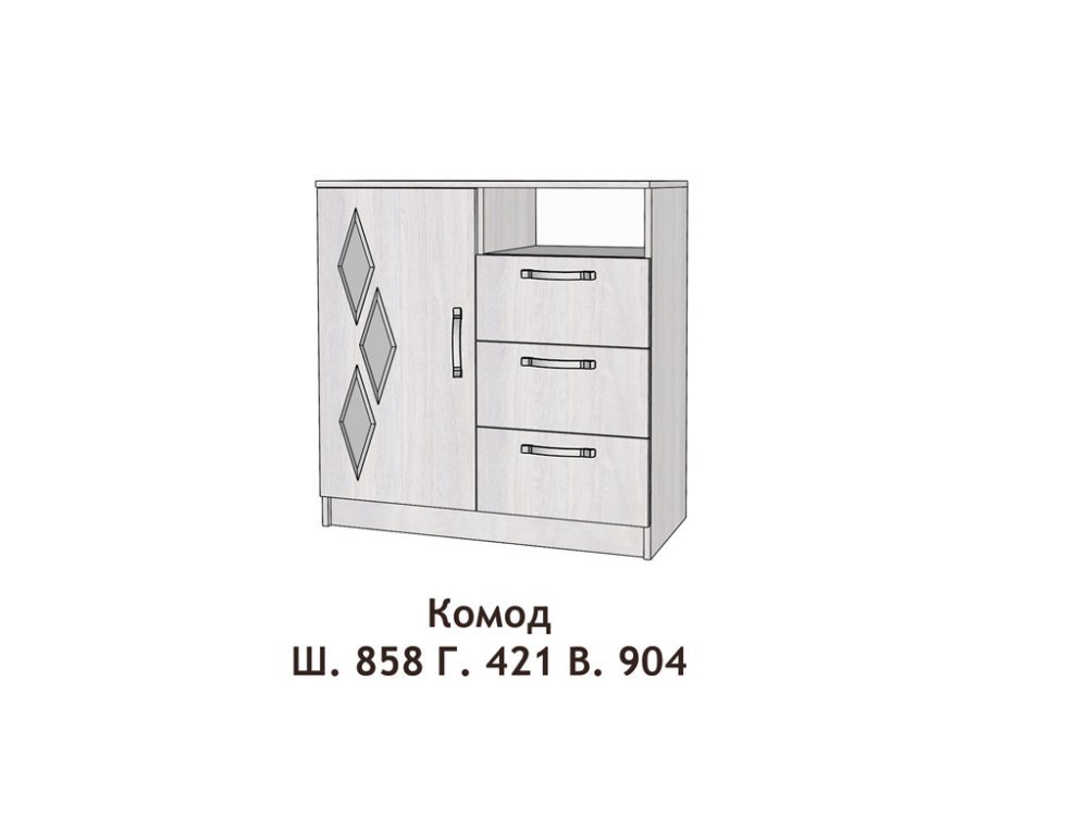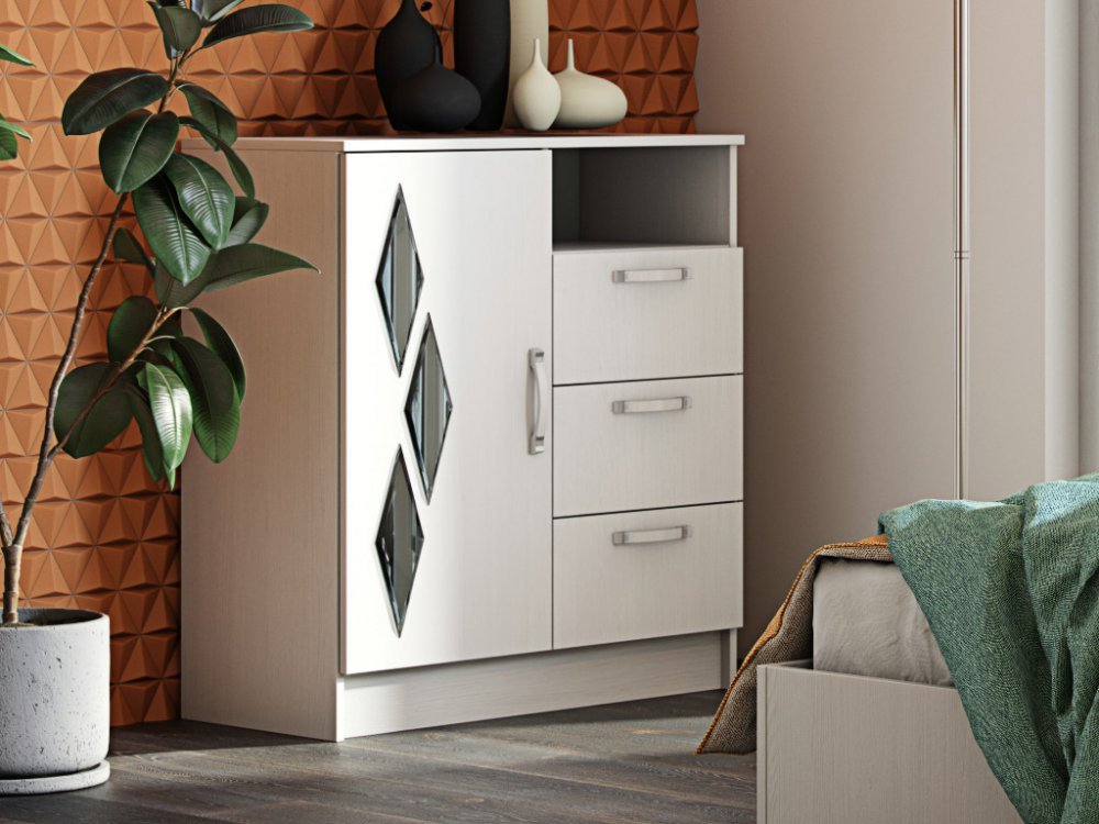 - на фасадах шкафов используется декор из зеркал в виде ромбов с широким фацетом.