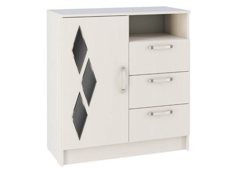 - Дно ящиков и задние стенки изделий выполнены из облагороженного ЛДВП белого цвета.