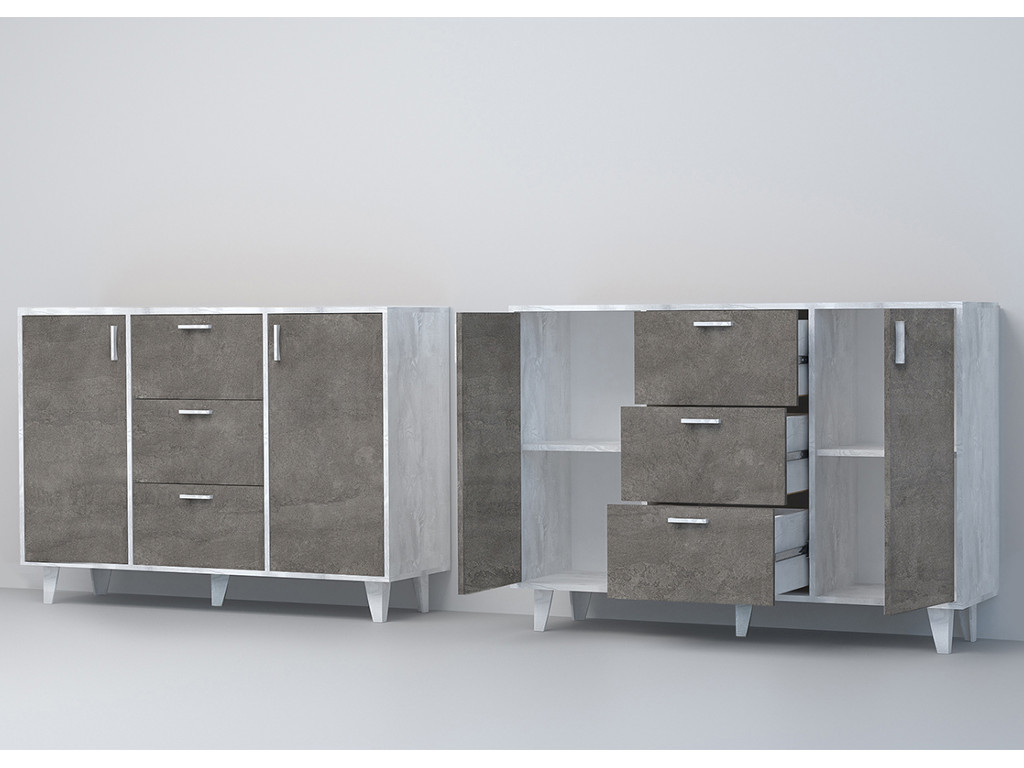 - Комод Эго К-2 2 ящика бетон светлый/камень темный на ножках