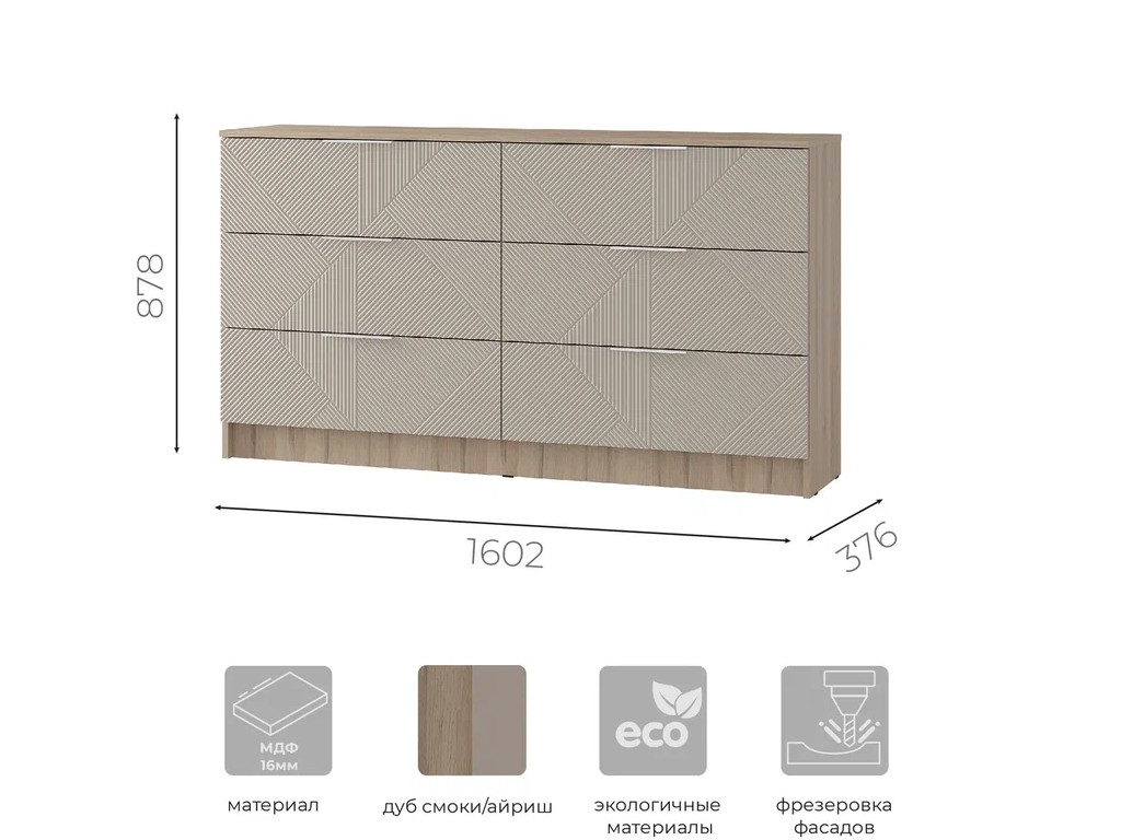 Размеры (ширина, глубина, высота): 1602x376x878 мм