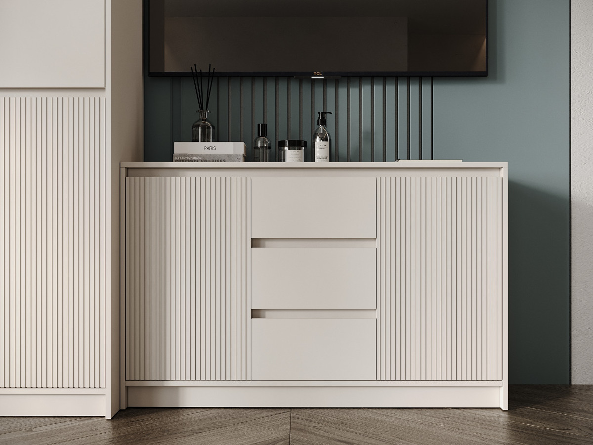 - Фасад ящиков изготовлен из ЛДСП корпуса. Полезный объём ящиков Д.338 х В.106 х Г.318мм.