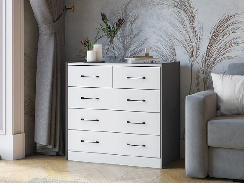 Комод Риберо графит серый/белый снег