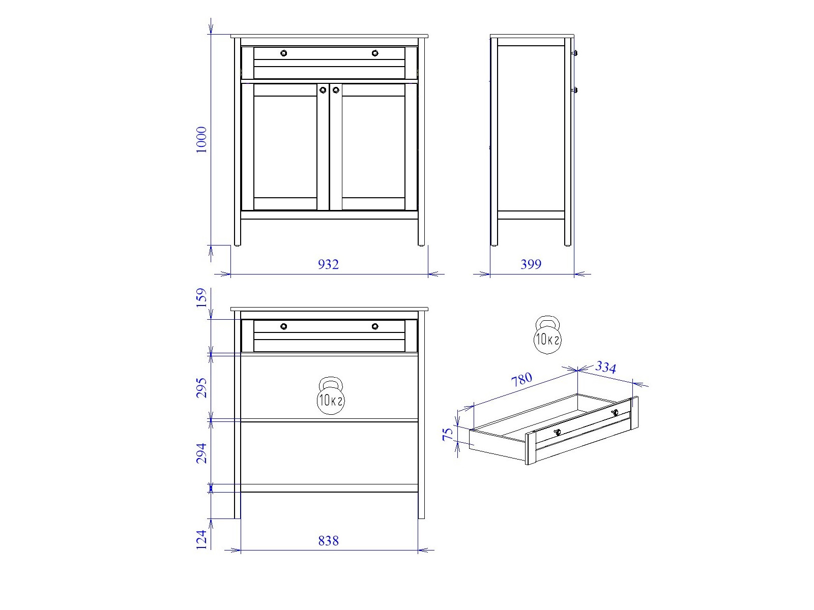 Макс.нагрузка на ящик (кг): 5