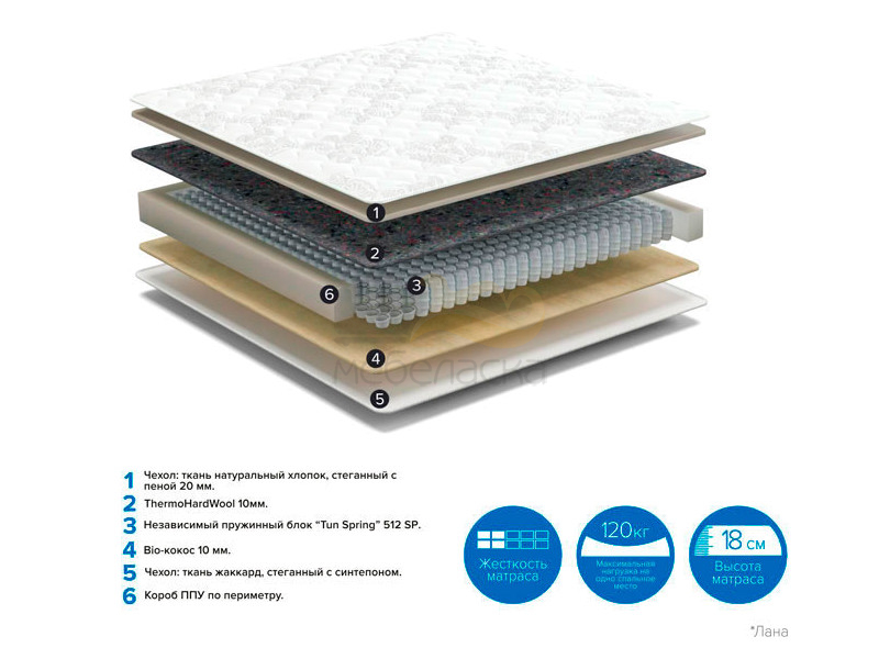 - Матрас Lana No Flip ширина 1800