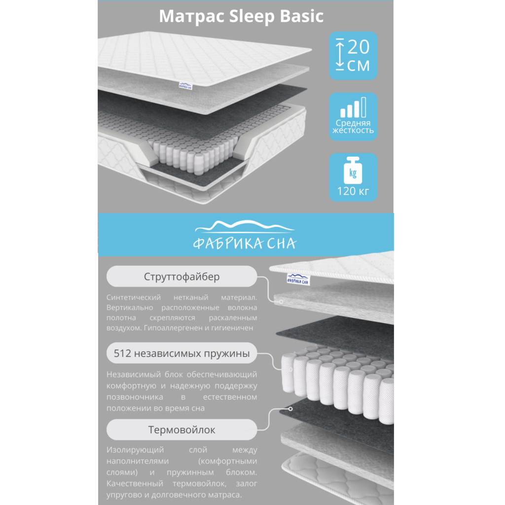 - Матрас Sleep Basic шириной 800 мм