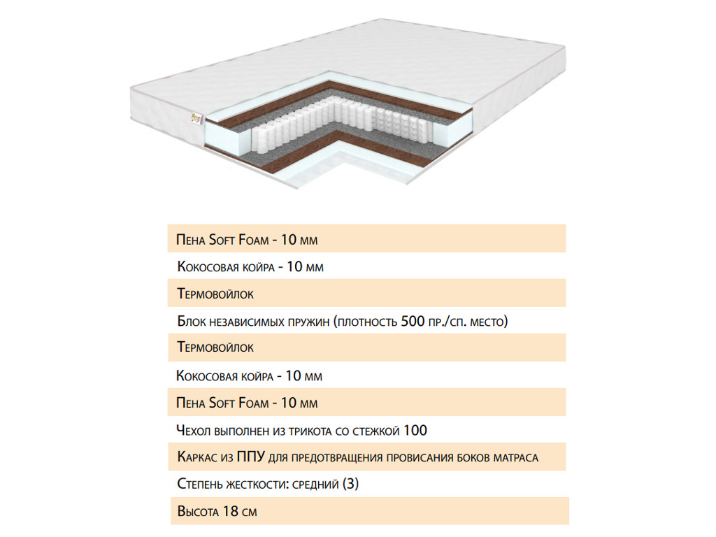 - Пружинный блок ""TFK"" Термовойлок Кокосовая койра (10)
