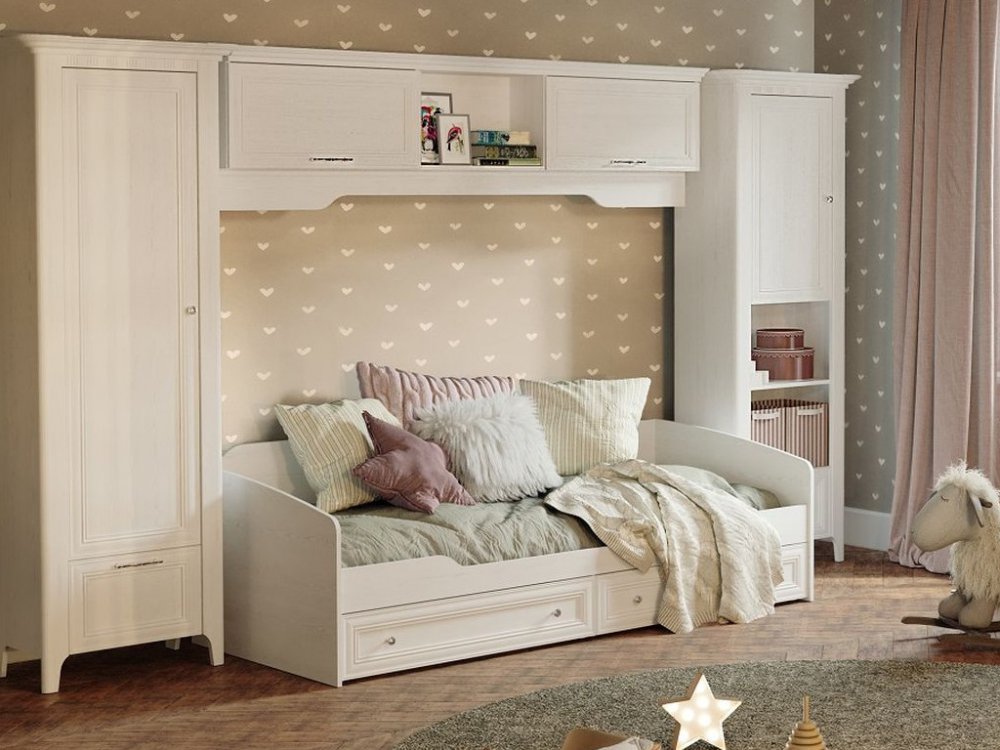 Цена за комплект: Кровать с ящиками, Шкаф для одежды 1-но дверный, Пенал книжный, Шкаф-полка навесная
