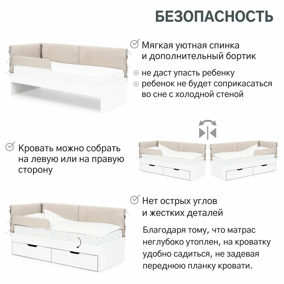 Детская мягкая кровать с накидным чехлом Бельмарко “Denvas” – это комфортное место для сна и игр мальчика или девочки от 2 до 10-12 лет.