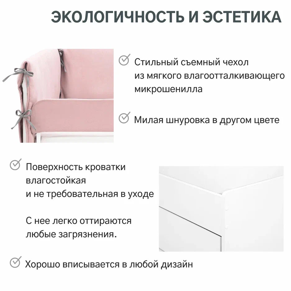 Детская мягкая кровать Denvas с бортиком пыльная роза