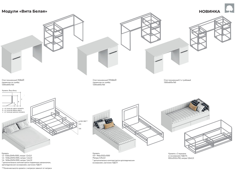Цена за комплект: Стол письменный ПРАВЫЙ, Полка настенная №2, Шкаф 3-ств с зеркалом, Кровать 0,9, Настил 90
