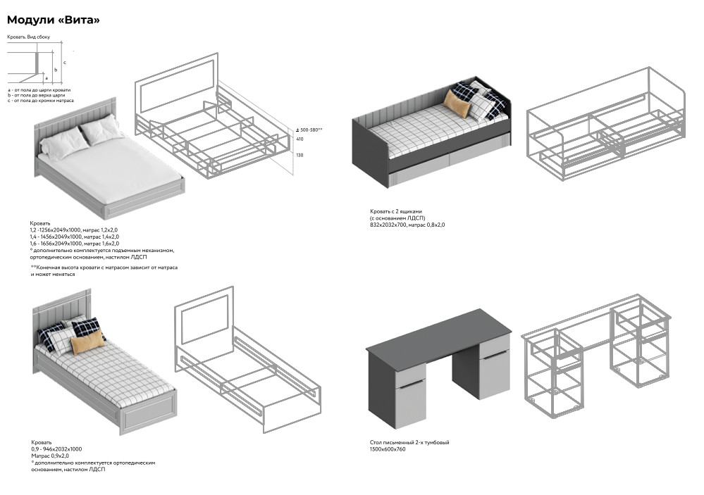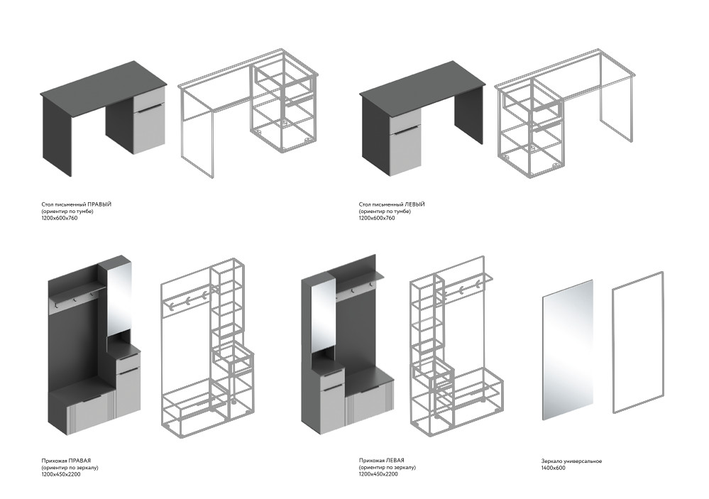 Цена за комплект: Стол письменный ПРАВЫЙ, Полка настенная №2, Шкаф 3-ств с зеркалом, Кровать 0,9, Настил 90