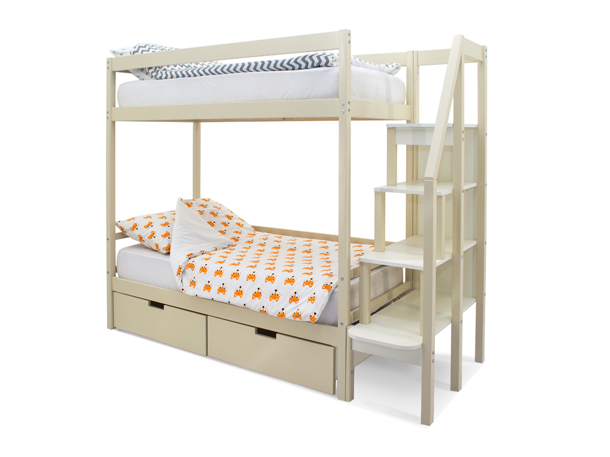 Двухъярусная кровать Svogen с ящиками бежевый