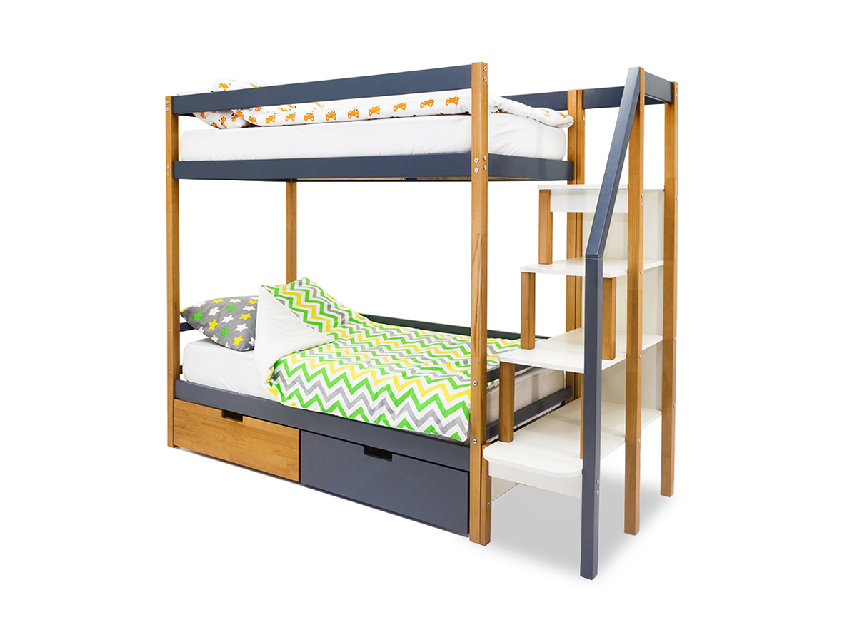 Двухъярусная кровать Svogen с ящиками дерево-графит