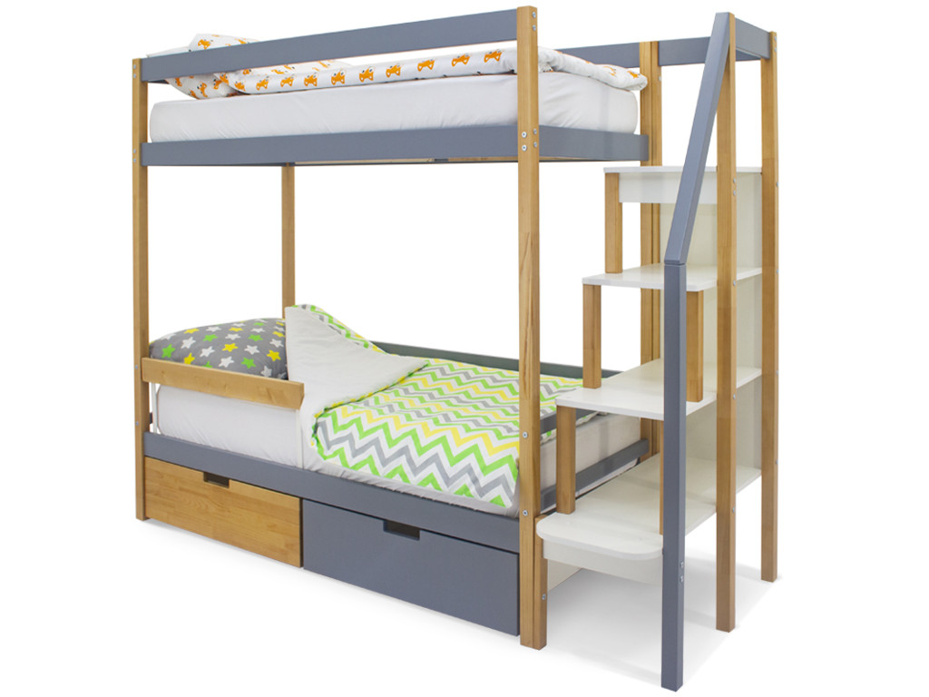 В комплекте: кровать + 2 ящика + бортик (нижний)