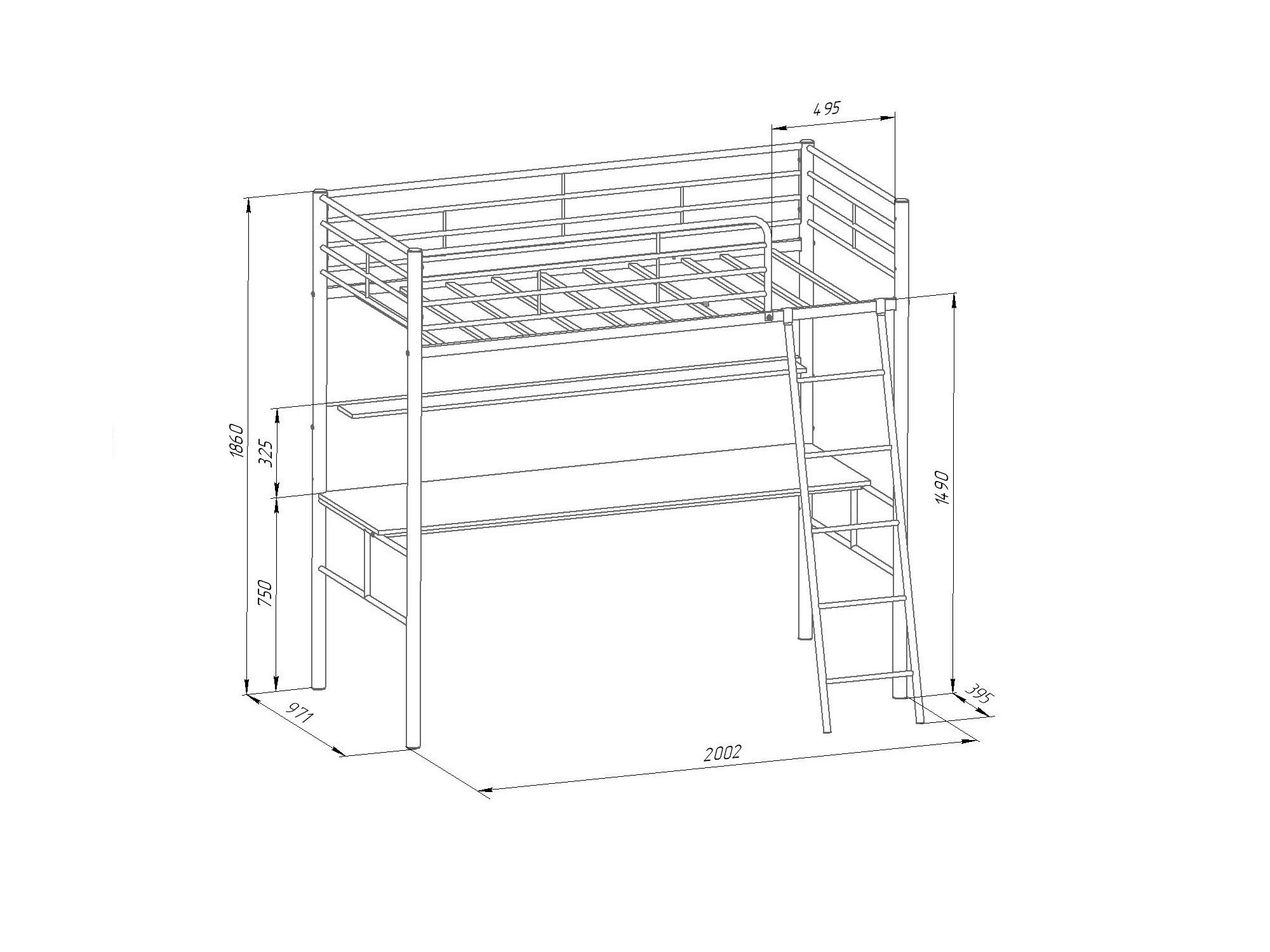 Ширина верхнего спального места: 900х1900 мм