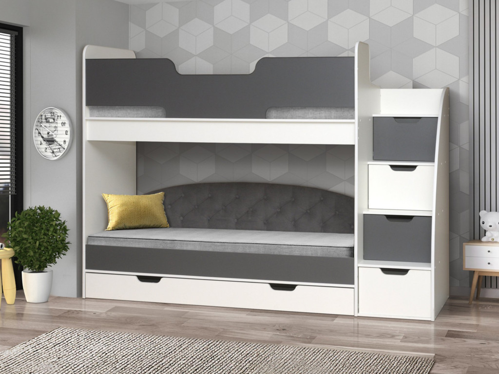 - Кровать детская двухъярусная Юниор 13 лдсп белый-графит