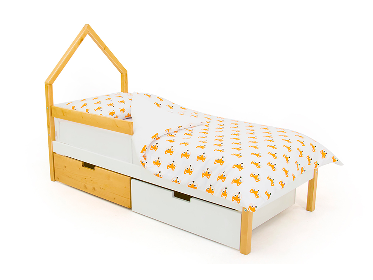 - Кровать-домик мини Svogen с ящиками и бортиком дерево-белый