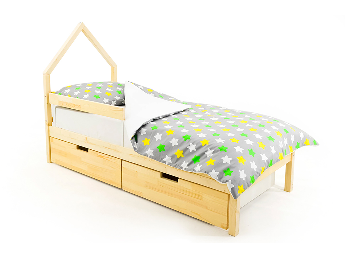 - Кровать-домик мини Svogen с ящиками и бортиком натура без покрытия