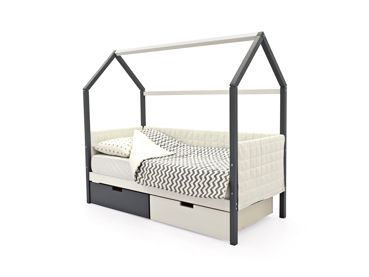- Кровать-домик мягкий Svogen с ящиками графит-белый
