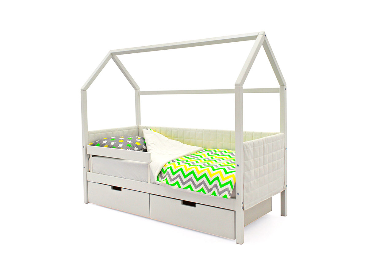 Кровать-домик мягкий Svogen с ящиками и бортиком белый