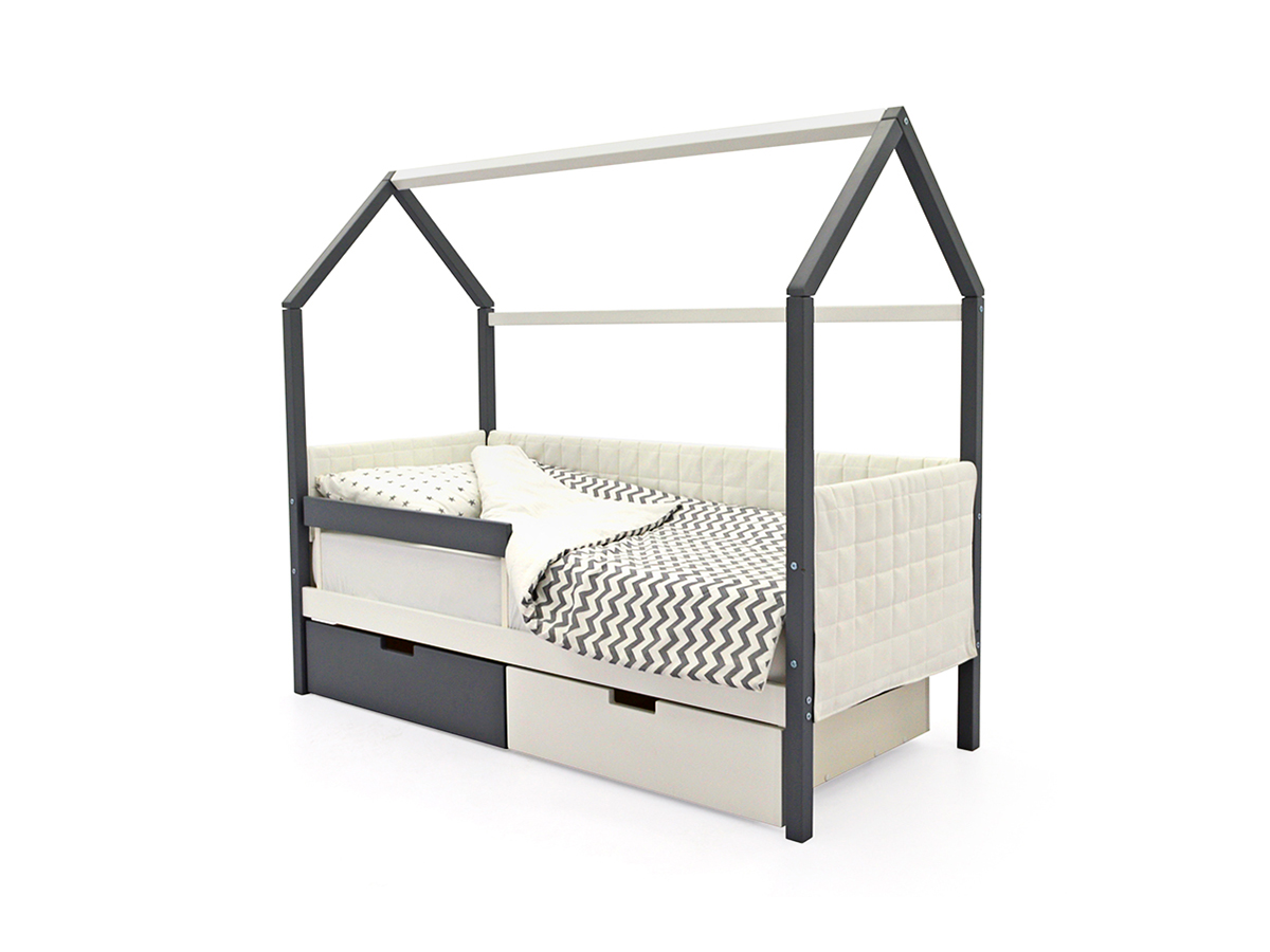 Кровать-домик мягкий Svogen с ящиками и бортиком графит-белый