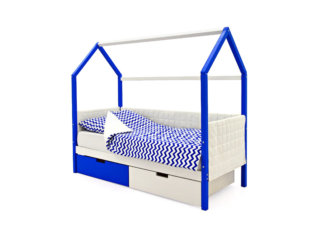 - Кровать-домик мягкий Svogen с ящиками сине-белый