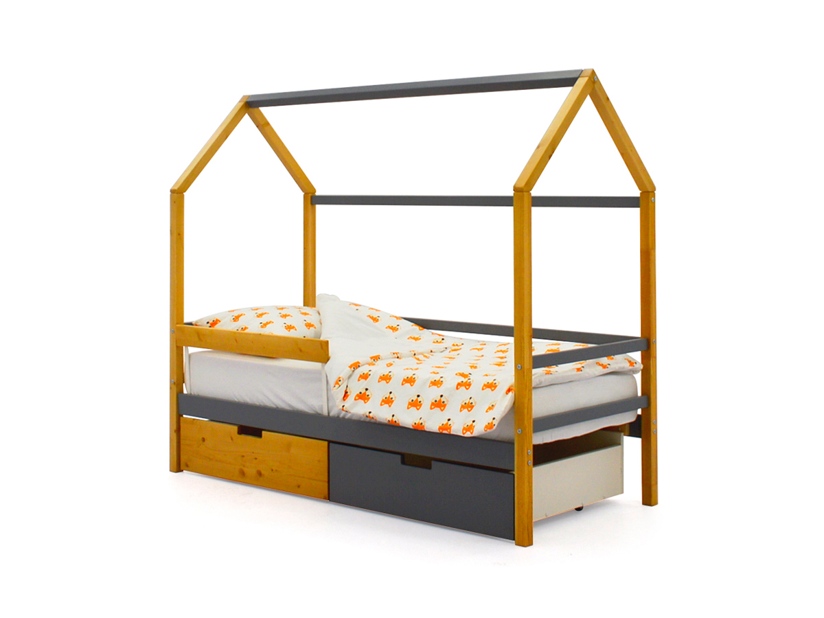 - Кровать-домик Svogen с ящиками и бортиком дерево-графит