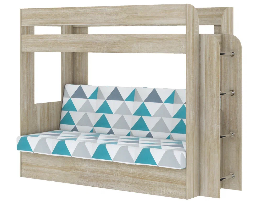 Кровать двухъярусная Карамель 75 сонома-бирюзовые треугольники