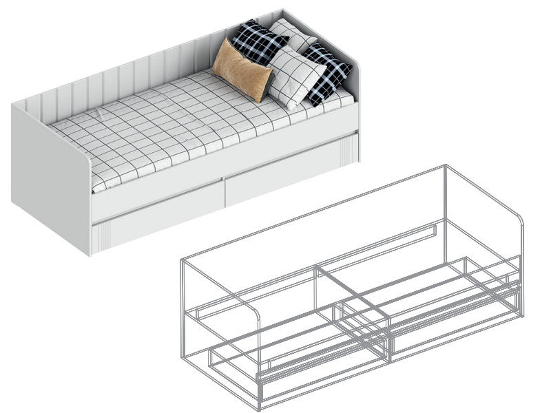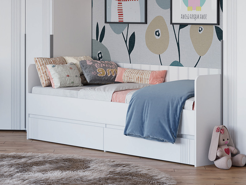 - Кровать с 2 ящиками Вита белый лофт