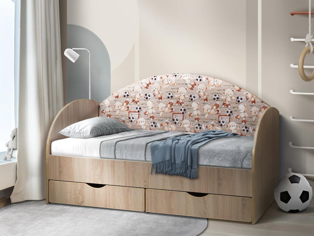 Кровать с продольной мягкой спинкой Софа №11 800х1900 мишки