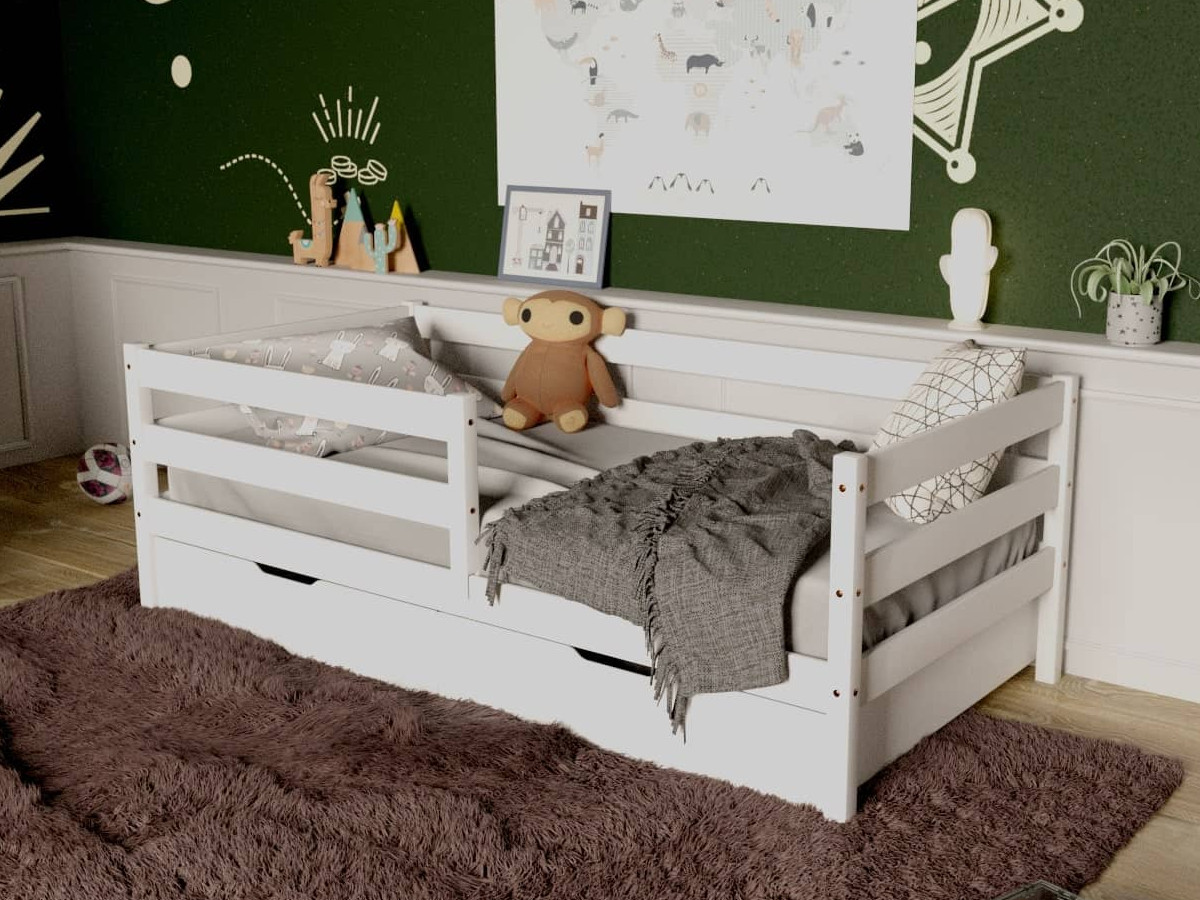 - Кровать-софа детская с бортиками белый 80х160 см с ящиками