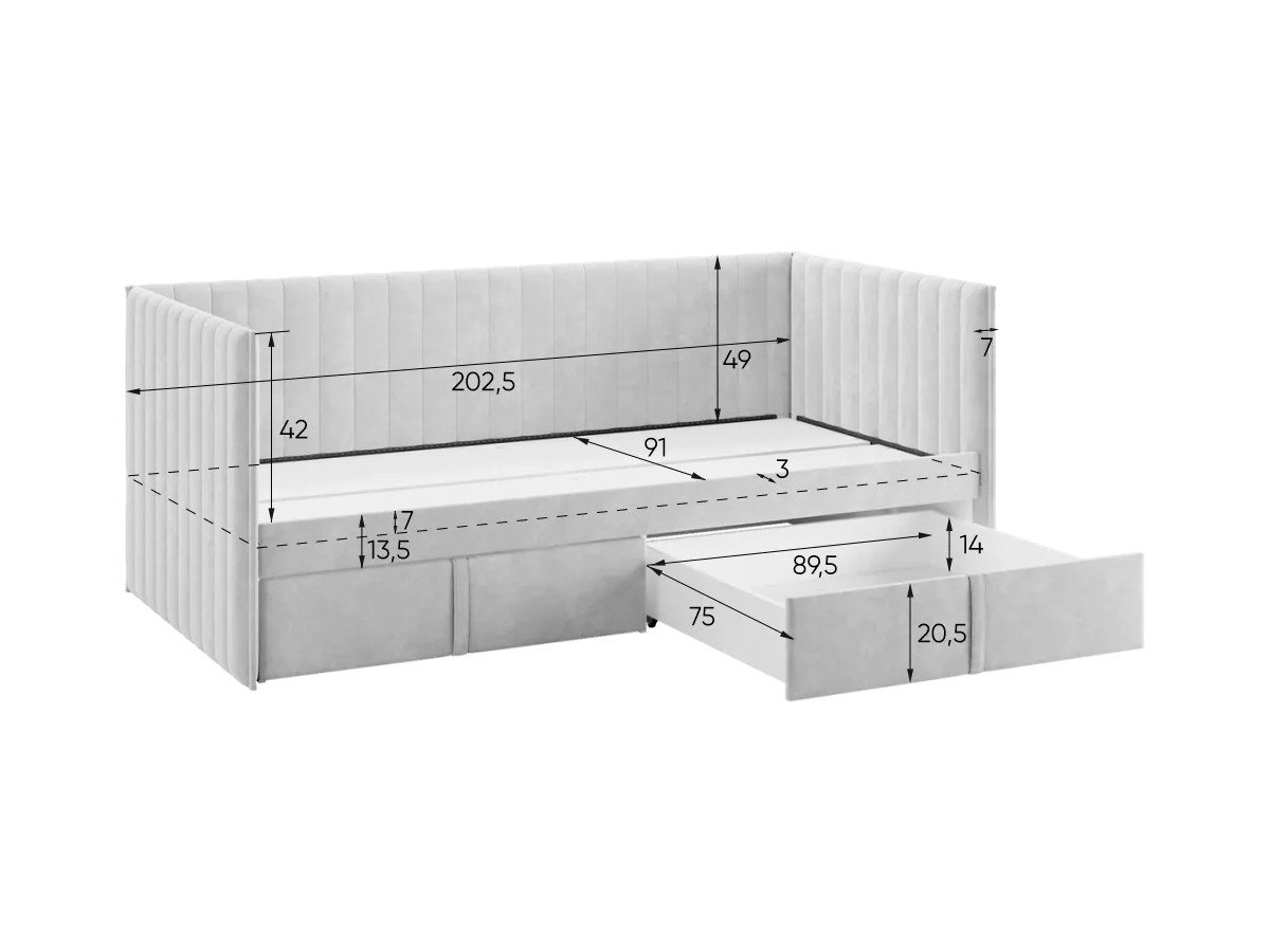 - Кровать-софа с ящиками Твикс цвет велюра галька