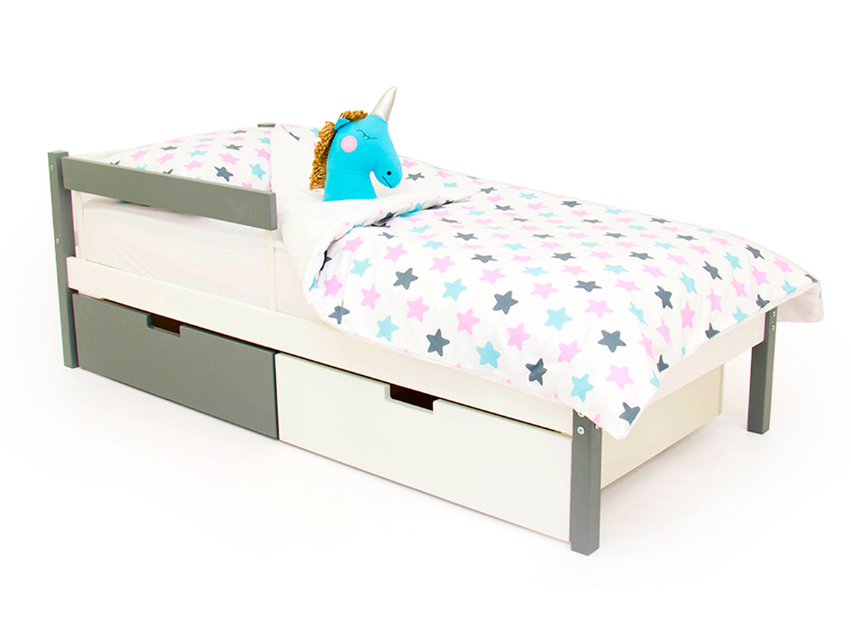 - Кровать Svogen classic с ящиками и бортиком графит-белый