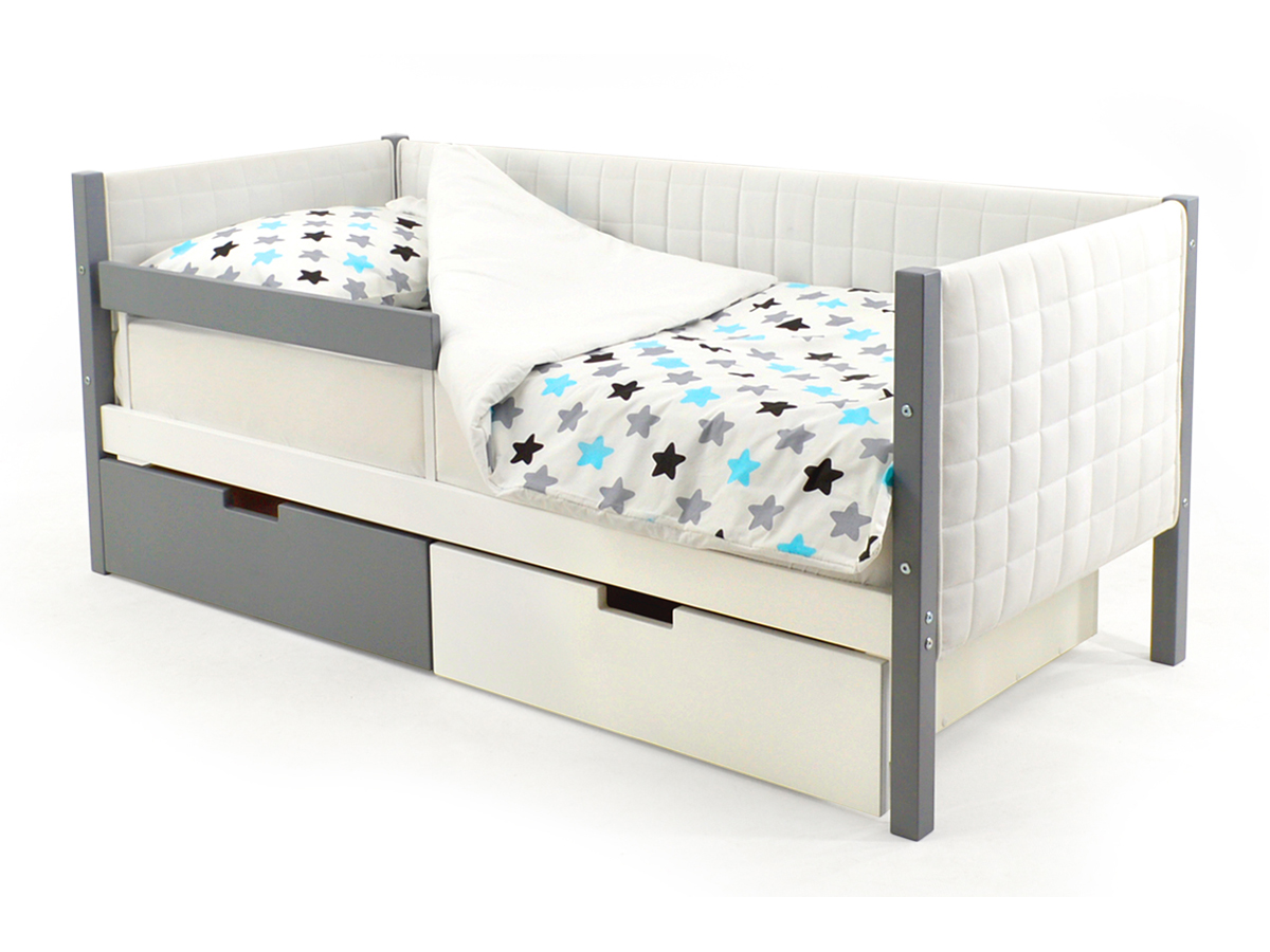 Кровать-тахта мягкая Svogen с ящиками и бортиками графит-белый