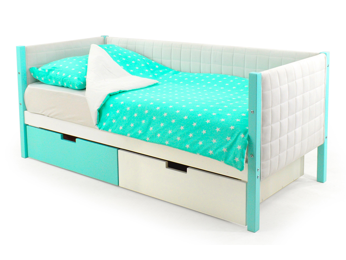 - Кровать-тахта мягкая Svogen с ящиками мятно-белый