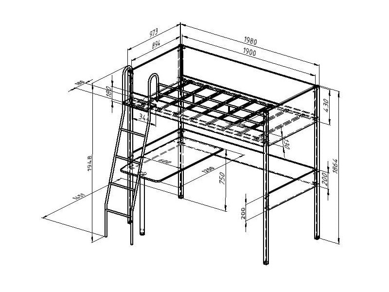 Кровать-чердак Дельта-лофт 20.02.01 Дуб ирландский/черный