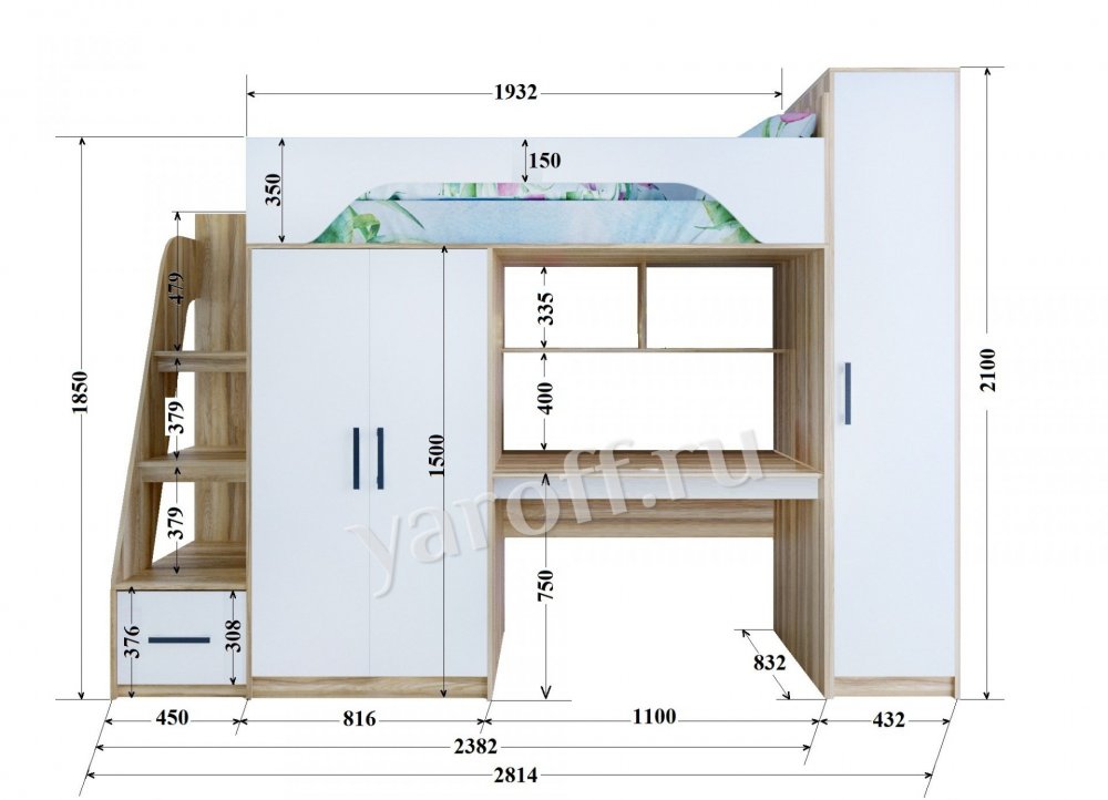 Цена указана за комплект - кровать и шкаф пенал. Их можно купить по отдельности
