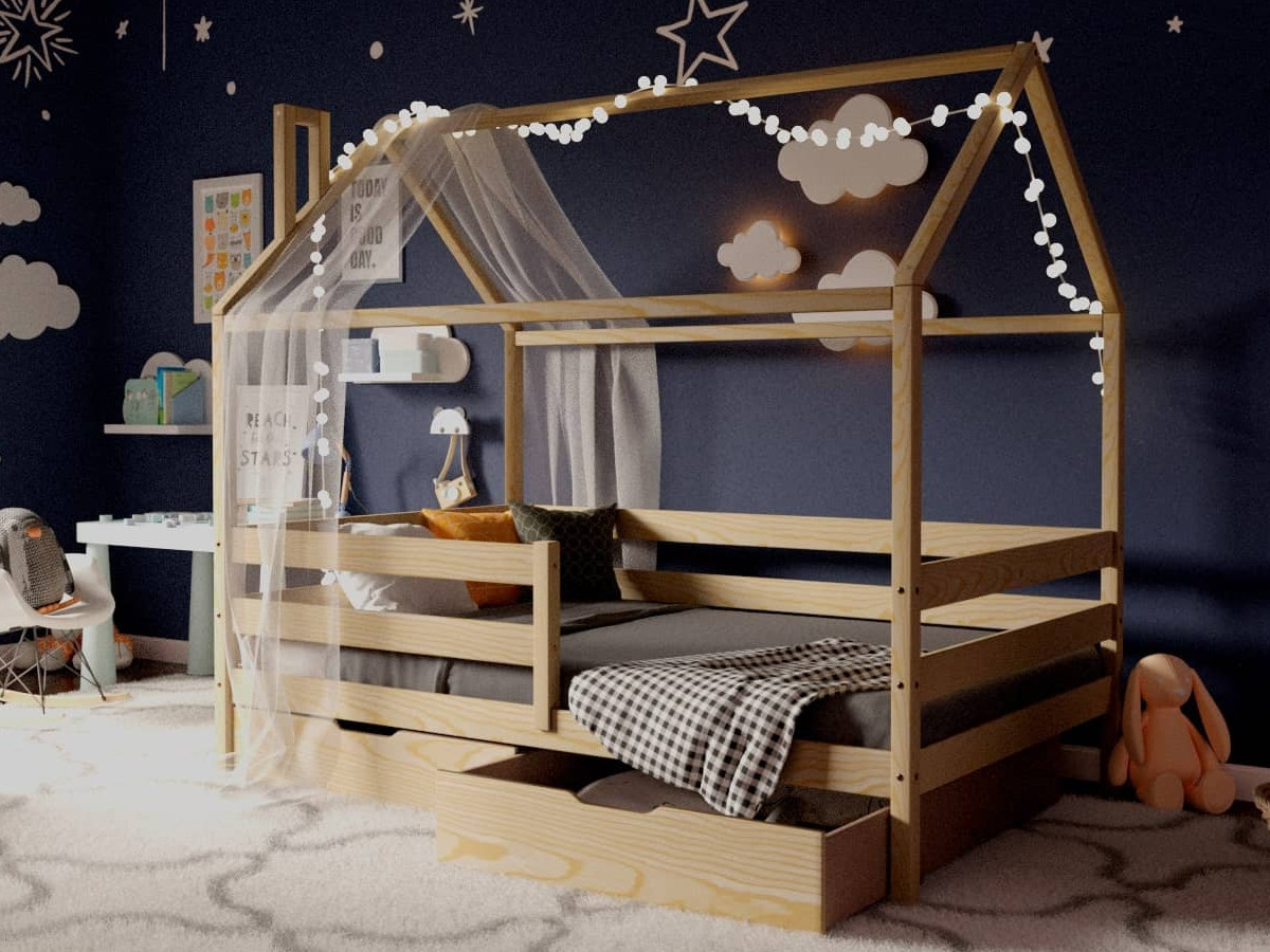 Кроватка-Домик без покраски 80х160 см с ящиками