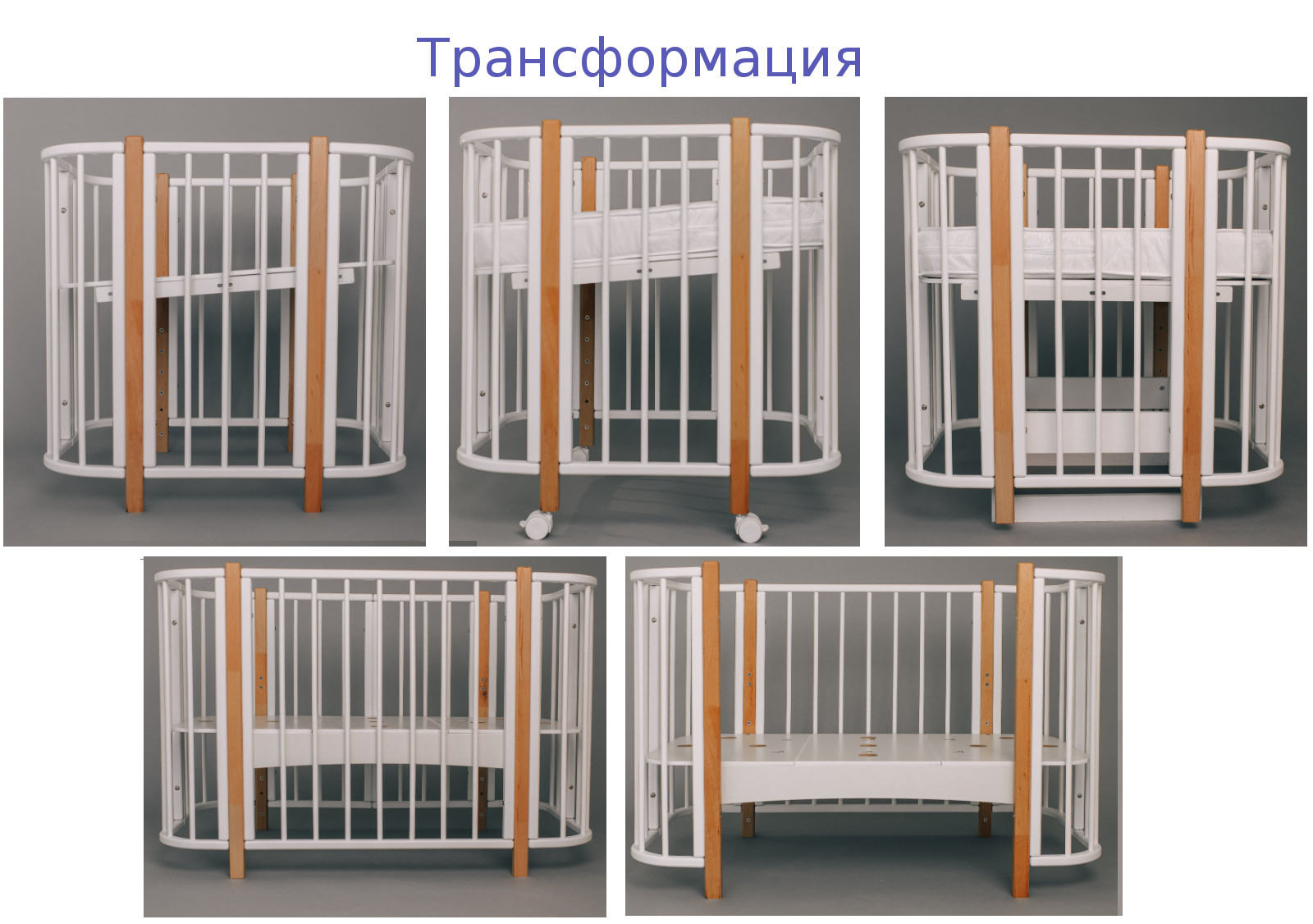 Кроватка-трансформер будет служить ребенку на разных этапах его жизни благодаря, как минимум, 4 вариантам трансформации
