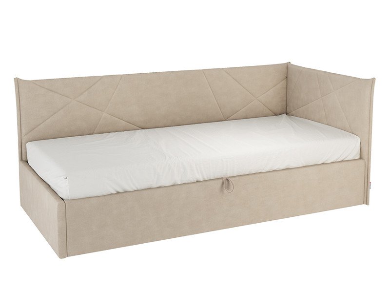 Основание подъемное входит в комплект кровати, петелька для подъема в цвет ткани на корпусе. Кровать имеет огромный ящик для хранения.