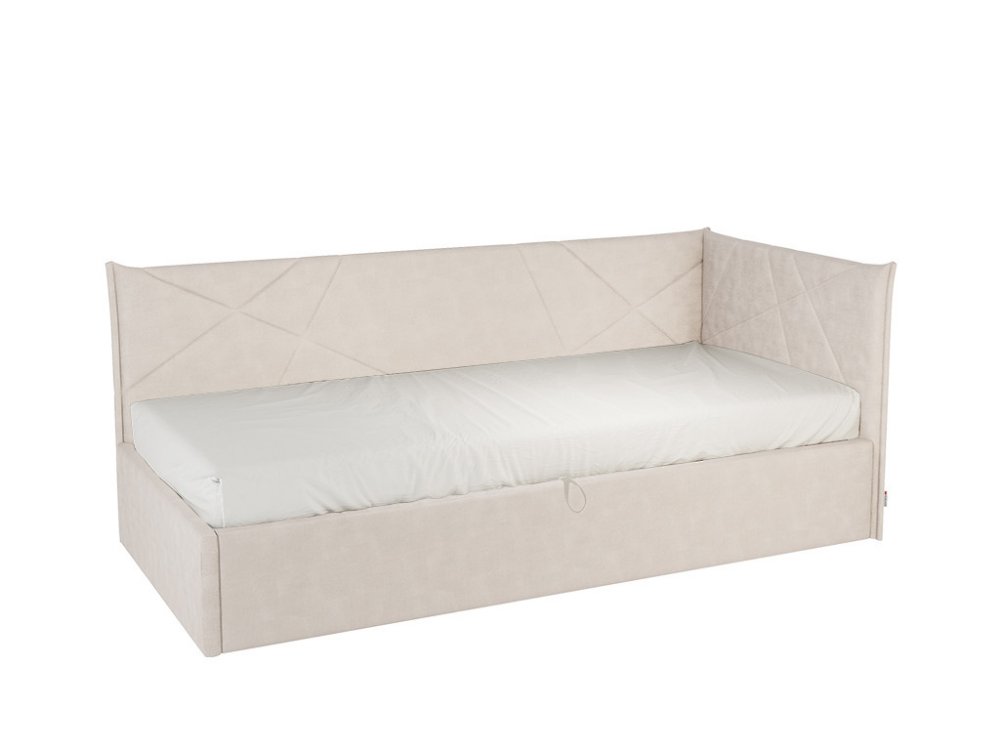 Основание подъемное входит в комплект кровати, петелька для подъема в цвет ткани на корпусе. Кровать имеет огромный ящик для хранения.