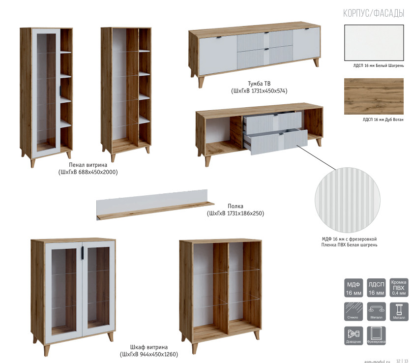 Цвет: ЛДСП Дуб вотан/МДФ Белый шагрень