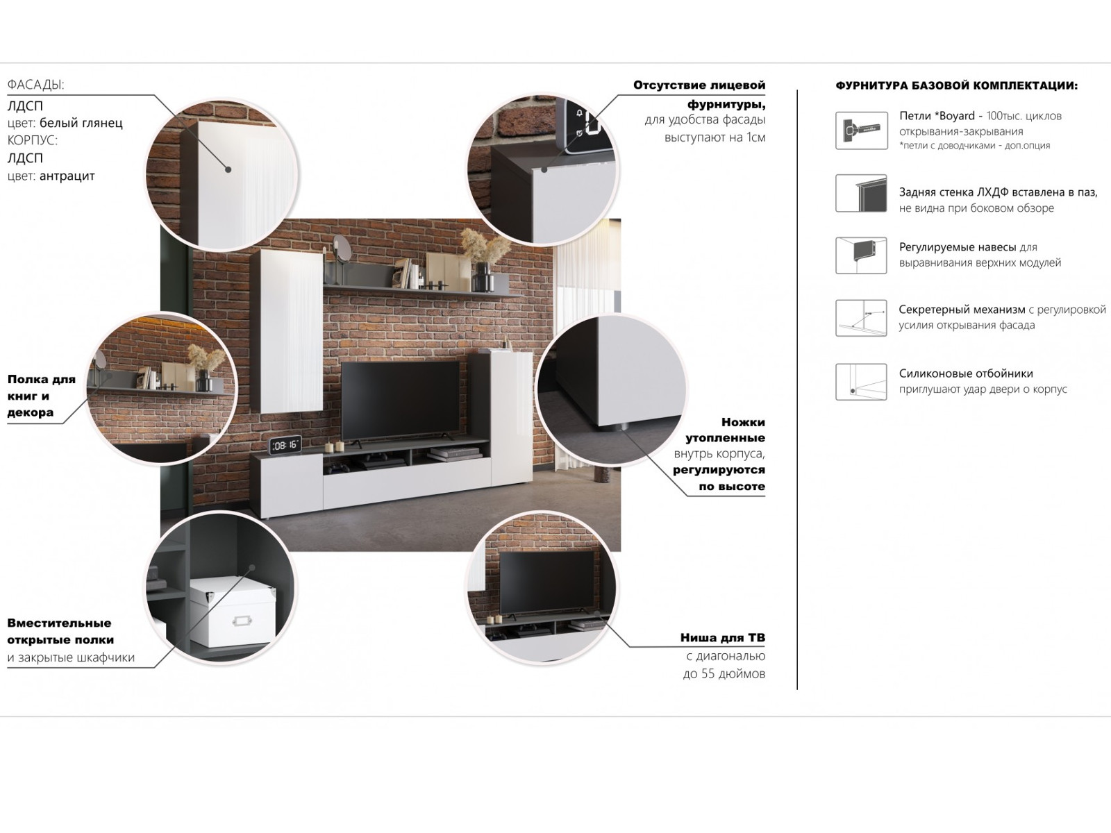 - Гостиная Нео Антрацит/Белый