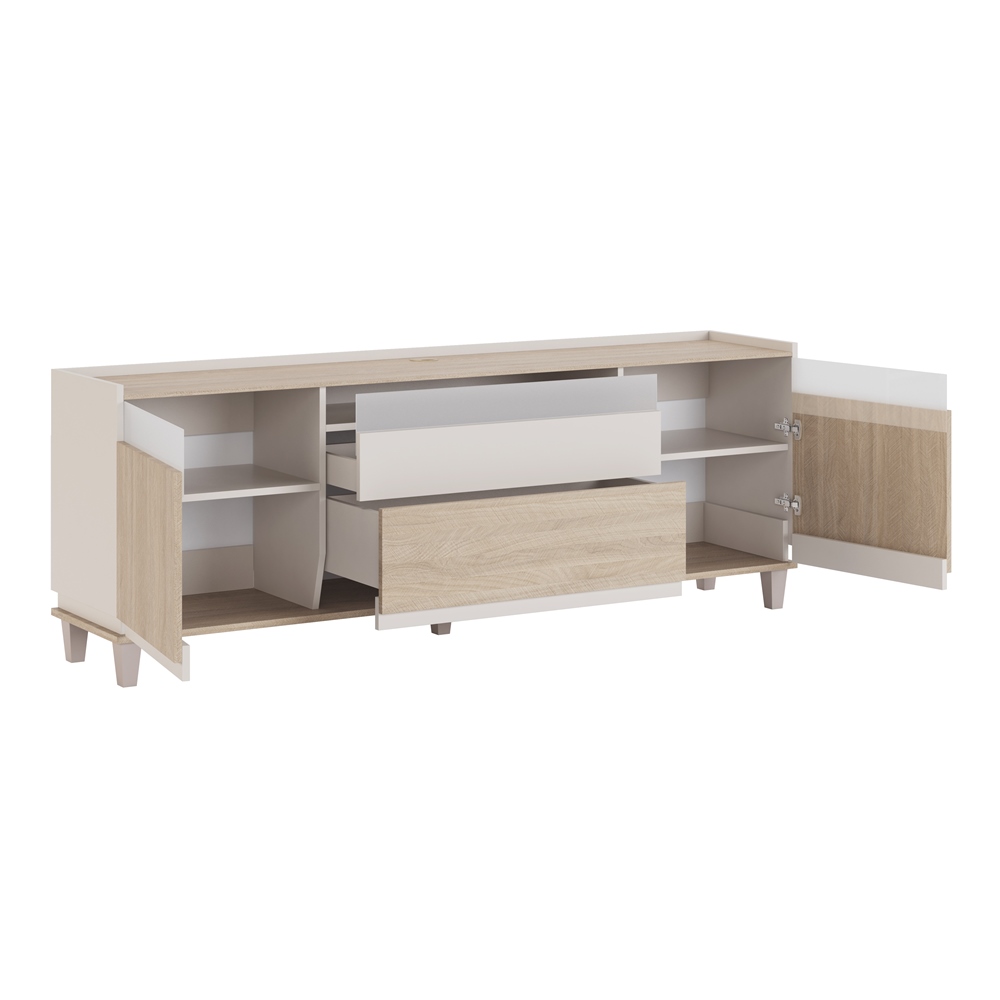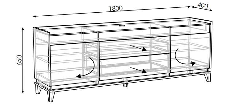 Дверцы декорированы тонированным стеклом, ножки из массива дерева