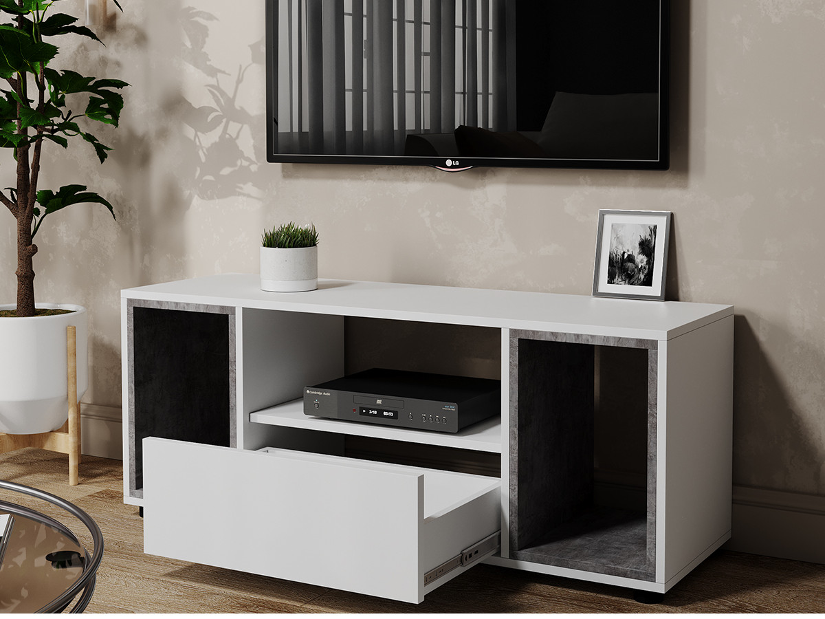 Комплект: ТВ-Тумба MODUL 1150 + Вставка MODUL (Камень серый или Дуб крафт) - 2 шт