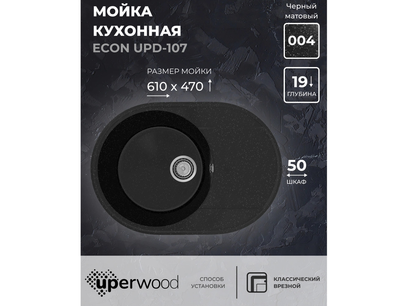 - Кухонная мойка Uperwood ECON UPD-107-004 черная матовая