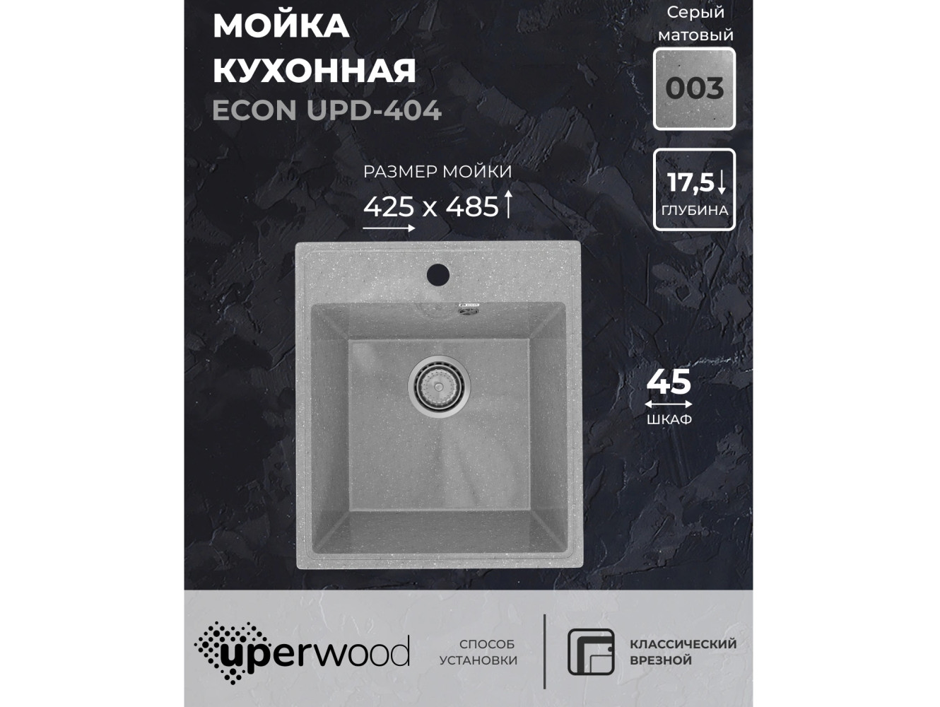 Кухонная мойка Uperwood ECON UPD-404-003 серая матовая