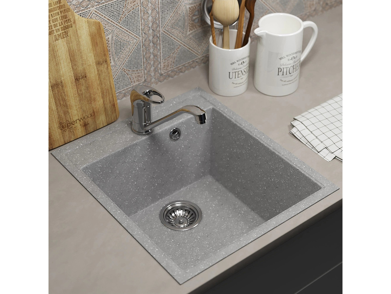 - Кухонная мойка Uperwood ECON UPD-404-003 серая матовая